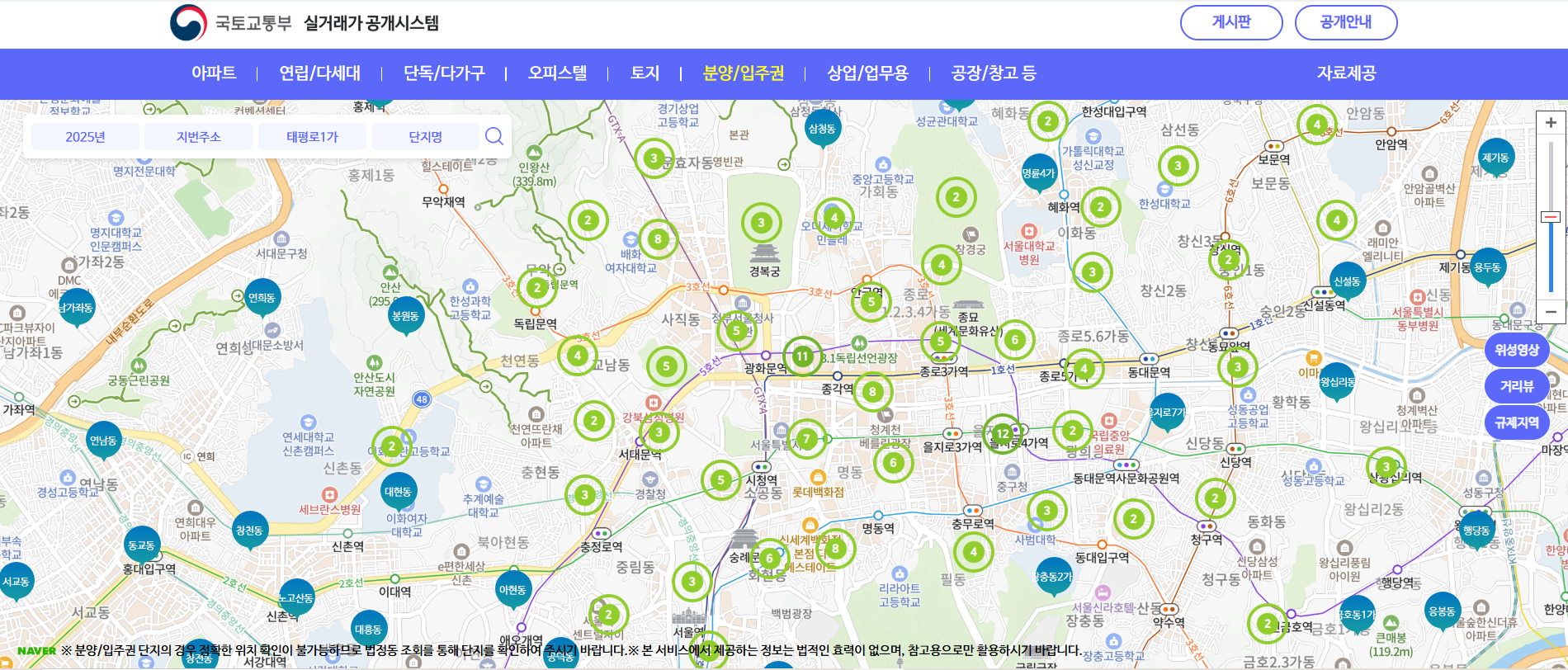 국토교통부에서 운영하는 실거래가 공개시스템은